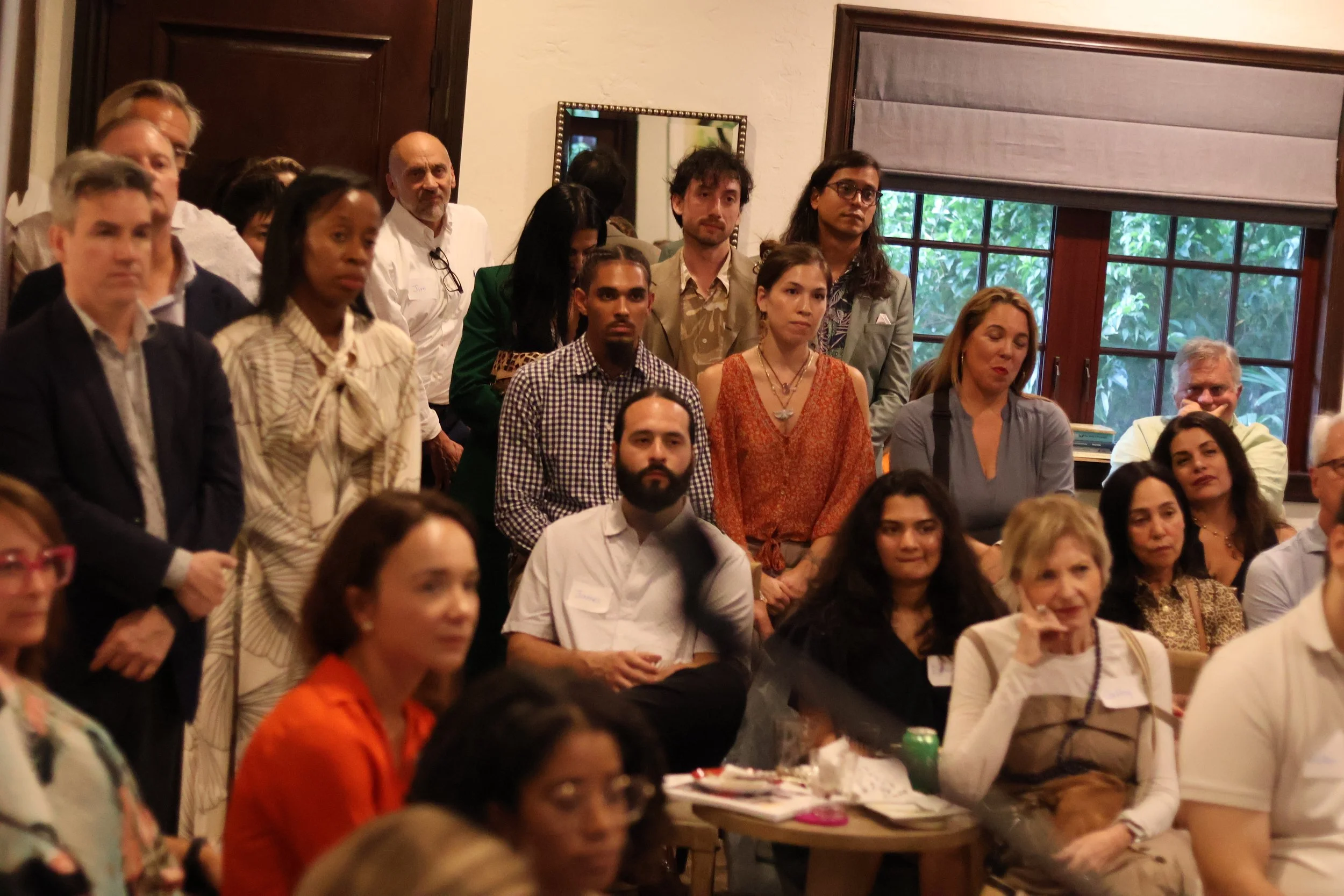 LEBEC hosted an intimate gathering in Coral Gables that brought together influential voices across arts, education, and innovative finance to explore bold new pathways for supporting the next generation of creators. Held at a private residence and moderated by LEBEC Founder and CEO Alix Lebec, the evening featured a moving fireside chat with award-winning choreographer JaQuel Knight and Guitars Over Guns CEO Chad Bernstein, followed by a dynamic panel conversation with leading voices in impact and the arts.